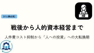 人事 戦後から人的資本経営まで:人件費コスト抑制から「人への投資」への大転換期【事例で学ぶ人事の歴史】 「戦後から現代までの日本企業の人事の歴史を徹底解説。年功序列から成果主義、そして「人への投資」としての人的資本経営へ。具体的な事例を交え、人事担当者が知るべき変遷と今後の展望を深掘りします。」 2025.06.22 人事