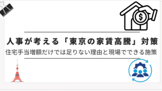 人事 人事が考える「東京の家賃高騰」対策 — 住宅手当増額だけでは足りない理由と現場でできる施策 東京の家賃高騰で住宅手当を増額する企業は増えていますが、人事目線ではそれだけでは不十分。離職リスクを下げる賃料ショックマップ、短期救済策、副業・スキル支援など具体策を分かりやすく解説します。 2025.10.18 人事