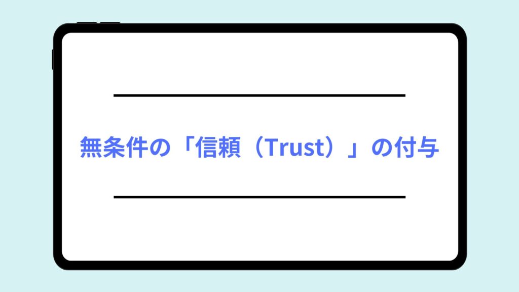 「いい子にしたら信じる」という条件付きの「信用」ではなく、裏付けや担保がなくても相手を信じる「信頼」を基盤に置きます。これはアタッチメント理論における「安全基地」を形成し、子どもが安心して外の世界へ探索(自立)に向かうための心の土台となります。