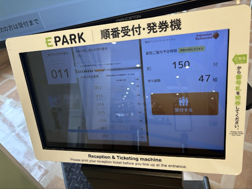 もしeパークをダウンロードしていなかったらレストランの並び時間が2時間~3時間になっていました。