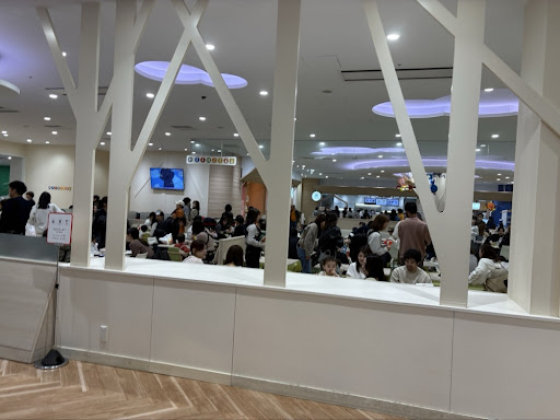とはいえ、ずっと抱っこ紐で過ごしていた赤ちゃんにとって、ベビーエリアでごろんとしたり寝返り・ハイハイができるのは良い息抜きになっていました。靴を履いて歩けるようになったら、もっと色々な場所で楽しめると思います。