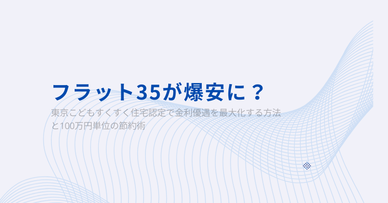 物価高に伴う金利上昇のリスクが囁かれる今、注目を集めているのが全期間固定金利の「フラット35」です。そして、東京都で家を探す子育て世帯にとって、このフラット35を「お得に安くする」にする最強の武器が、「東京こどもすくすく住宅認定制度」です。