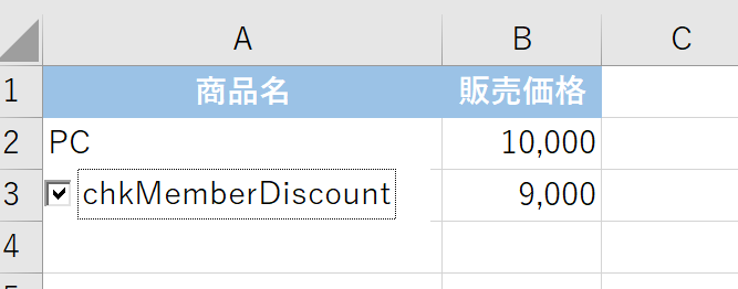 ActiveSheet.chkOptionA.Caption = “割引を適用済み”