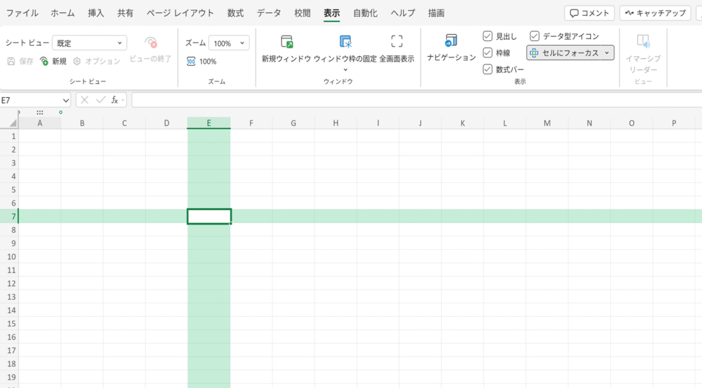 この方法は、エクセルに標準搭載されている「セルにフォーカス」というアドイン機能を利用します。設定がとても簡単で、すぐに試せるのが魅力です。