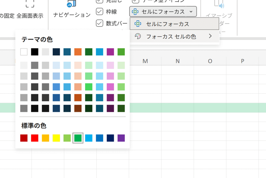 フォーカスセルの色は下記のように好きな色に変えることが出来ます!