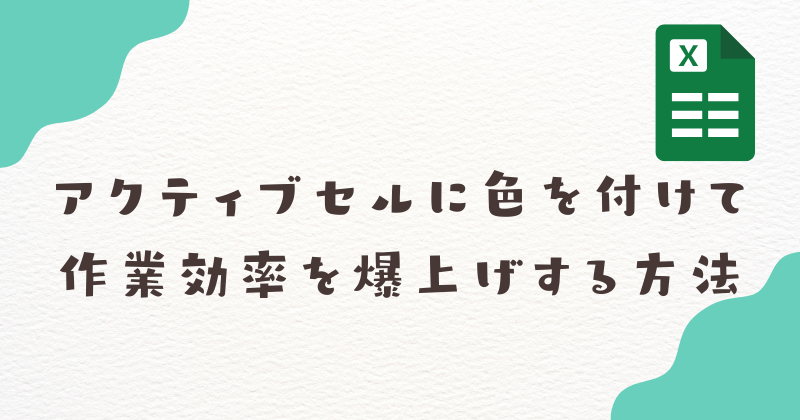 この記事では、そんなお悩みを一発で解決する、アクティブセルを自動で色付けする方法を3つご紹介します。