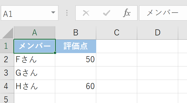 AVERAGEA関数が、AVERAGE関数とどのように違うのかを、具体的なデータで見ていきましょう。