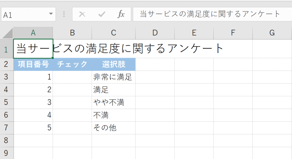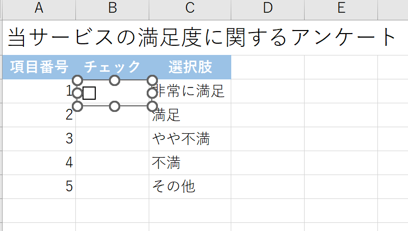 チェックボックスを挿入したいセル(場所)を、なんとなく頭に思い浮かべてください。