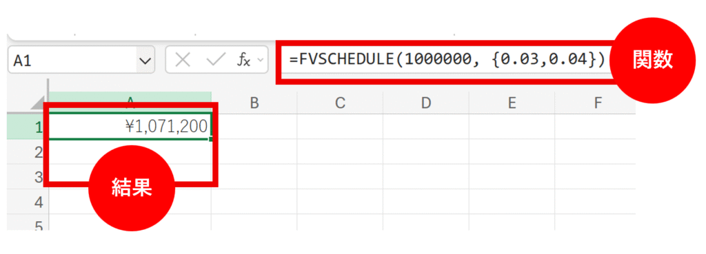 FVSCHEDULE | 複数の変動利率を適用した場合の元金の将来価値を計算します。 | =FVSCHEDULE(元金, 利率の配列) |