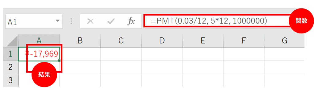 =PMT(利率, 期間, 現在価値, [将来価値], [支払期日])