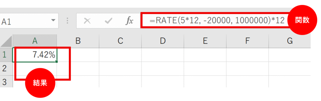=RATE(期間, 定期支払額, 現在価値, [将来価値], [支払期日], [推定値])