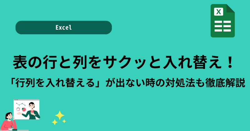 この記事では、Excelの行と列を入れ替える方法について、基本的な手順から「行列を入れ替える」オプションが表示されない場合の具体的な対処法、そして応用的なTRANSPOSE関数を使った方法まで詳しく解説しました。