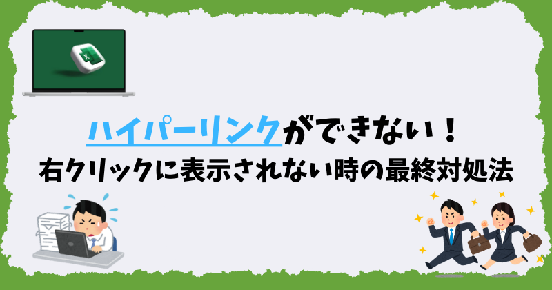 この記事では、Excelでハイパーリンクができない時の原因と、特に右クリックメニューに「ハイパーリンク」が表示されない場合の対処法について解説していきます!
