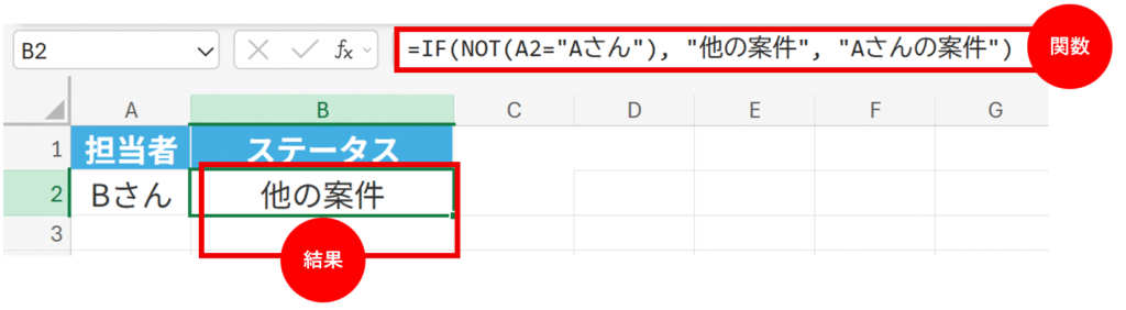 例題: 「担当者がAさんではない」場合に「他の案件」と表示したい。