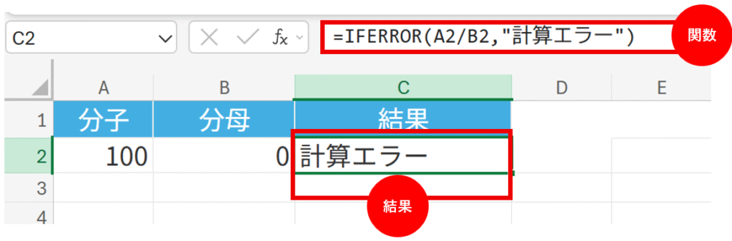 例題: 割り算の式で、分母が0の場合にエラー(#DIV/0!)を回避したい。