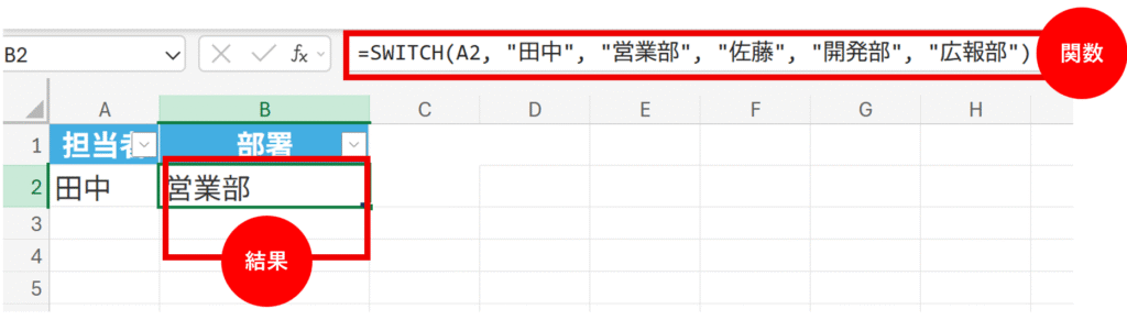 例題: 「担当者名」に応じて、担当部署を返したい。