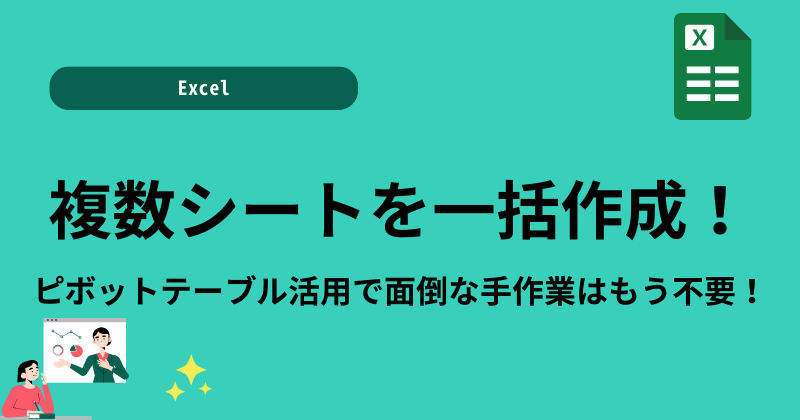 部署別、支店別、商品別など、項目ごとにシートを分けてデータを管理したい時、シートが10枚、20枚と増えていくと、手作業でのシート追加はかなりのストレスですよね。