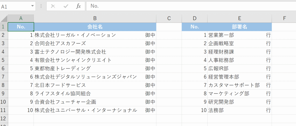 会社名リストや書類に使う「御中」や「行」を揃えたい場合も、基本は同じです。