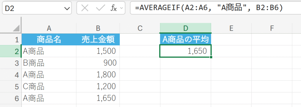 - 配列:平均を求めるデータを含む配列またはセル範囲を指定します。