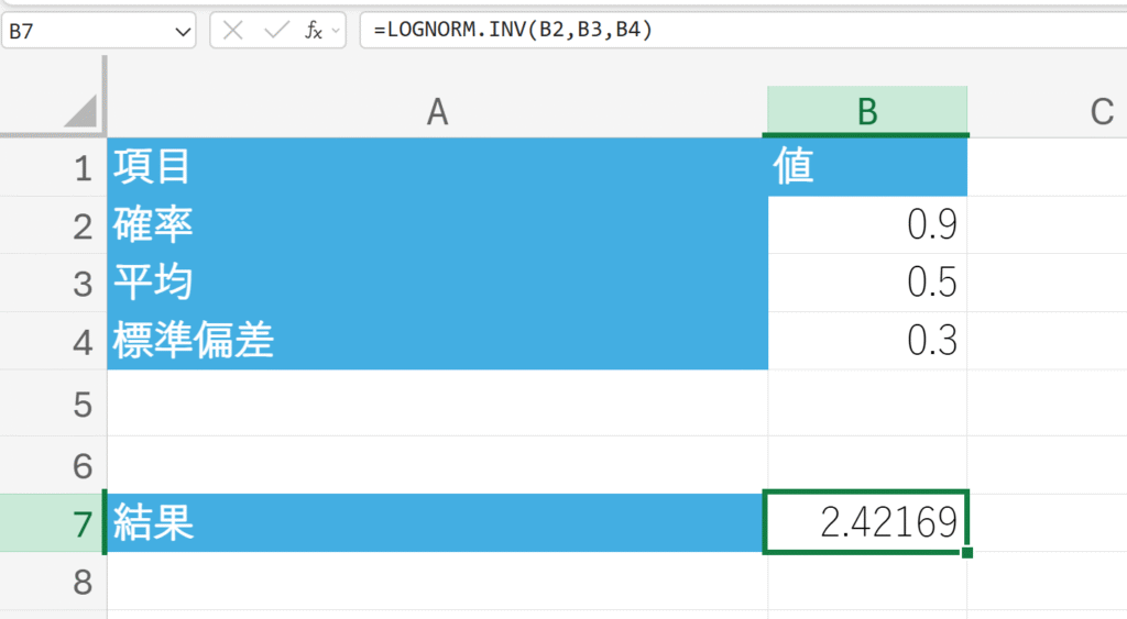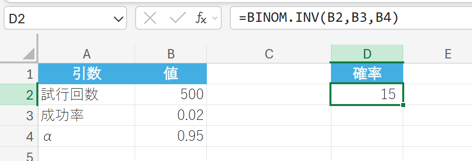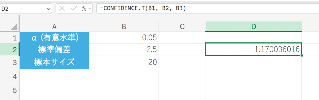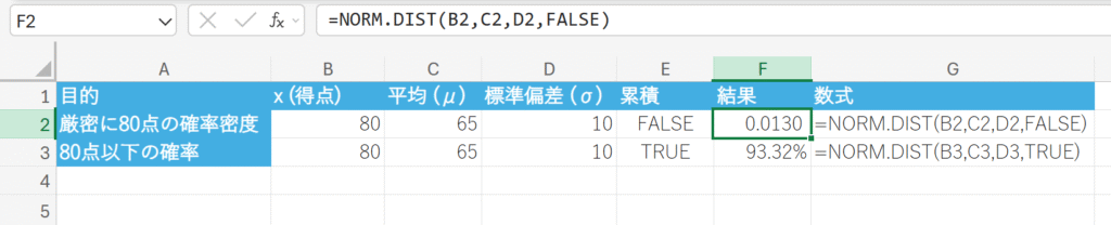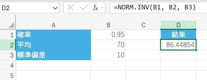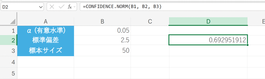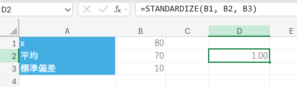- [σ]:母集団の標準偏差を指定します。省略すると、標本の標準偏差が使われます。