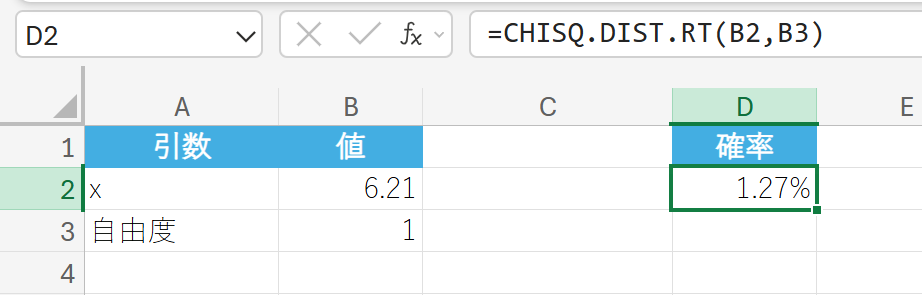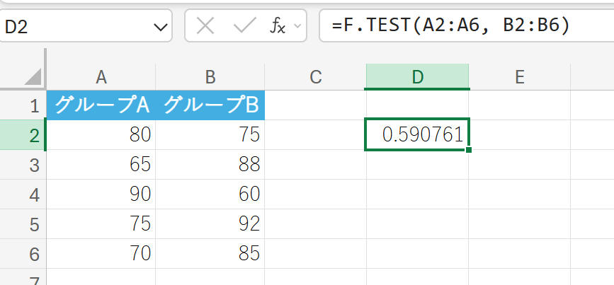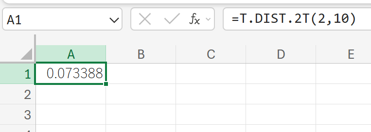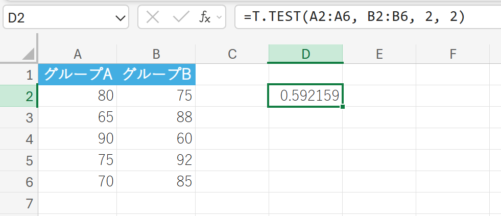 T.TEST 関数は、t 検定の結果(P 値)を返します。