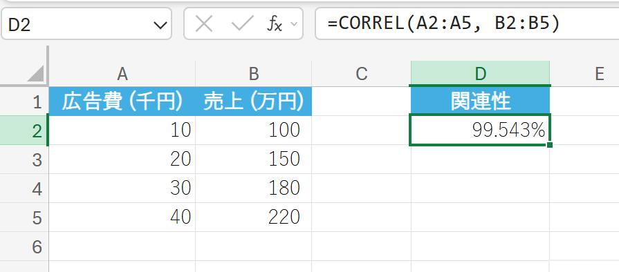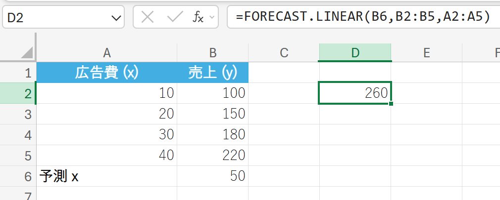 回帰分析・予測 | データの傾向分析と将来予測 | SLOPE、INTERCEPT、FORECAST、CORREL |