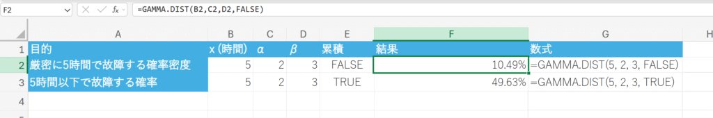 WEIBULL.DIST 関数は、ワイブル分布の累積分布関数または確率密度関数の値を返します。