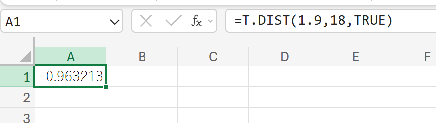 T.DIST 関数は、スチューデントの t 分布の値を返します。