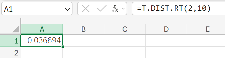 T.DIST.RT 関数は、スチューデントの t 分布の右側確率を返します。