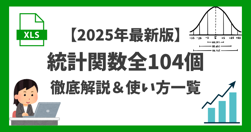 本記事では、Excelに用意されている 104 種類の統計関数を網羅的に解説し、それぞれの構文と実用的な使用例をご紹介しました。