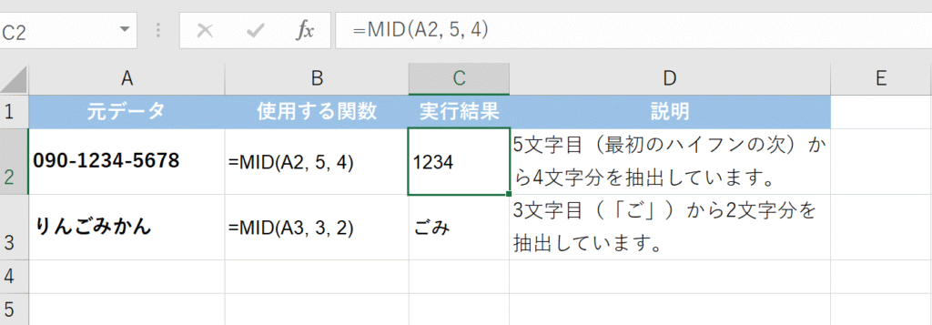 3. MID 関数