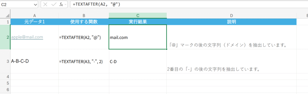 概要 指定した区切り記号より後にある文字列を抽出します。(Office 365の新関数)