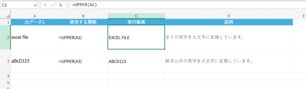 概要 文字列内の半角/全角の英字をすべて大文字に変換します。