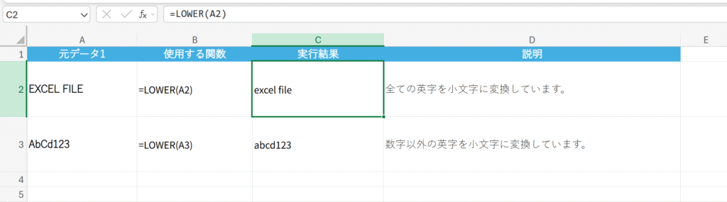 概要 文字列内の半角/全角の英字をすべて小文字に変換します。