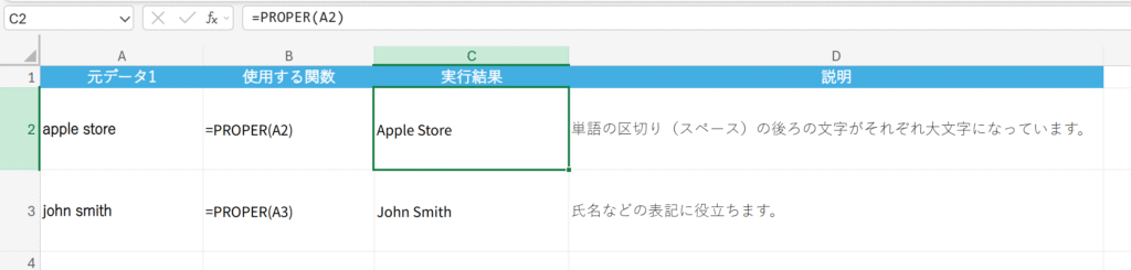 概要 文字列の単語の先頭文字のみを大文字に変換し、それ以外の英字を小文字に変換します。(固有名詞などに使えます。)