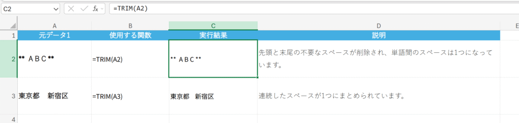 概要 文字列の先頭と末尾にある余分なスペースを削除し、単語と単語の間にある複数のスペースを1つにまとめます。