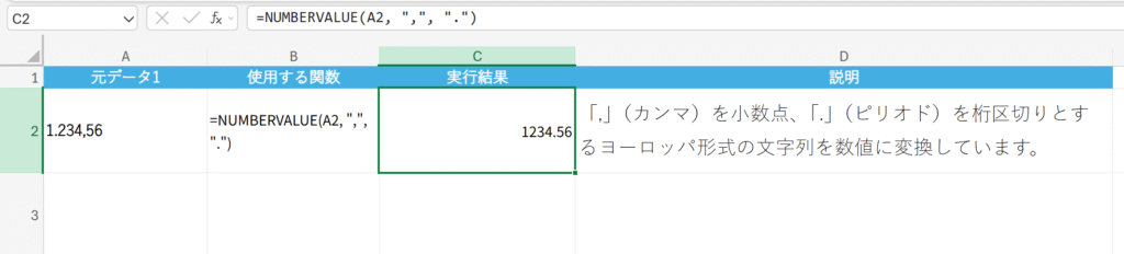 NUMBERVALUE(文字列, [小数点], [桁区切り])