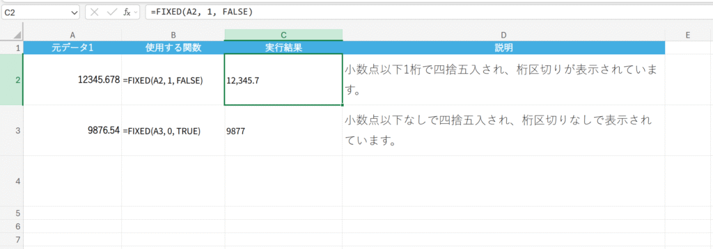 FIXED(数値, [小数点以下の桁数], [桁区切りを使用しない])