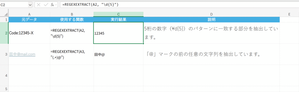 概要 文字列の中から、指定した正規表現パターンに一致する部分を抽出します。(Office 365の新関数)
