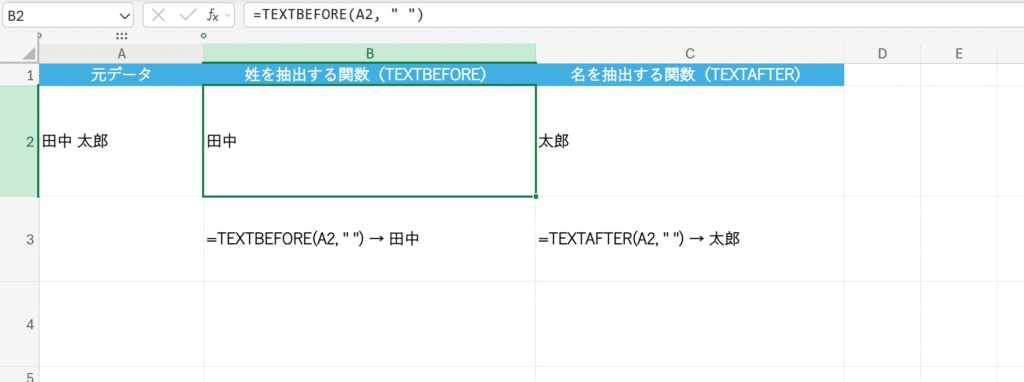 セル内の文字列を、指定した区切り文字で一気に複数の列や行に分割できます。 - TEXTBEFORE / TEXTAFTER