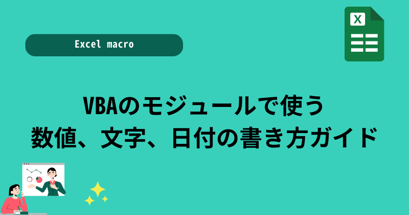 これで、マクロのモジュール内での数値、文字、日付の書き方はバッチリです。 ぜひ実際に手を動かして、マクロを書いてみましょう!