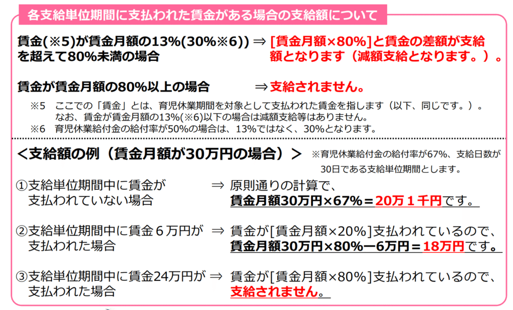 引用:育児休業期間中に就業した場合の育児休業給付金の支給について