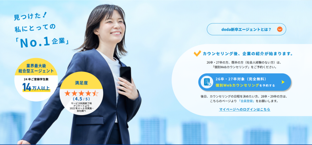 - 大手・ホワイト志向で安定したいなら: (doda新卒or マイナビ新卒紹介) + キャリアチケット