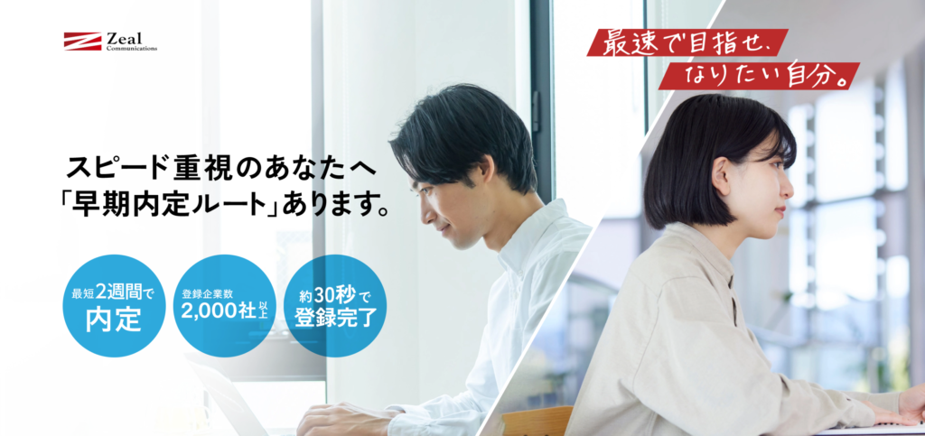 企業の人事責任者と直接つながる「密なパイプ」があるため、書類選考パスや面接回数短縮などの特別選考ルートで最短1週間でのスピード内定が狙えます。 元体育会系のアドバイザーによるマンツーマンの「面接ドリル」が強力で、自己PRが苦手な人でも人事に評価される言葉にブラッシュアップしてくれます。