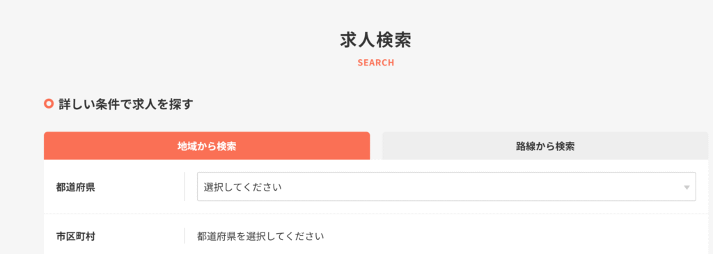 公式:求人検索する際に都道府県や市区町村、路線から検索することが出来ます。