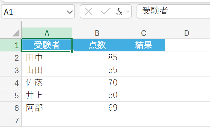 IF関数を組み込んで、判定基準(70点以上)を関数に持たせます。