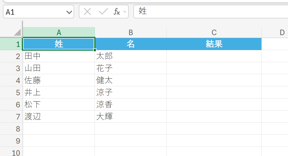 お客様名簿などで、名字と名前をくっつけて、最後に「様」を付けたい場合の例です。