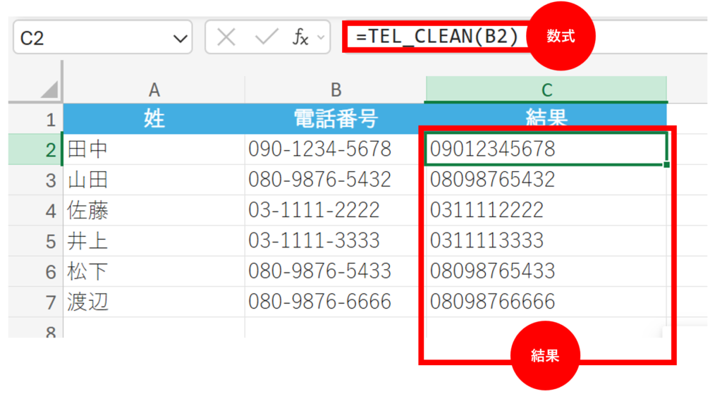 システム入力用に、ハイフン入りの電話番号から数字だけを取り出す関数です。