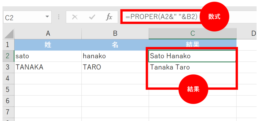 テクニック①:姓名を結合して「先頭のみ大文字」にする