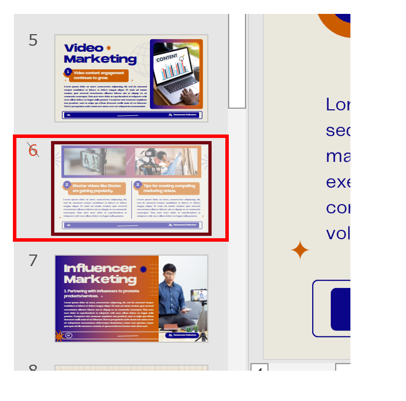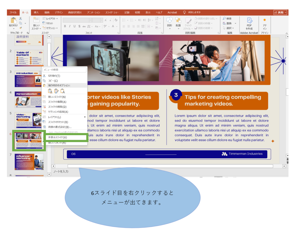 6スライド目を右クリックし「非表示スライド」を押下しましょう!